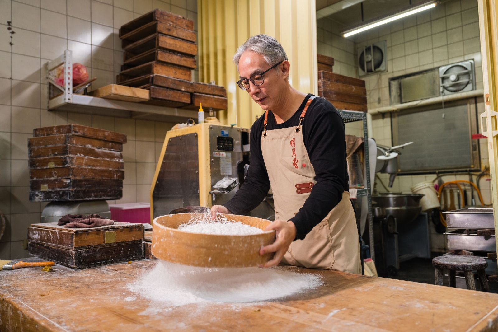 明月堂本店設有廚房,和菓子都是在此製作,再運送到其他分店。(謝寬攝)