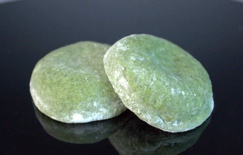 ▲明月堂使用新鮮艾草製成的季節限定商品草餅艾草大福。