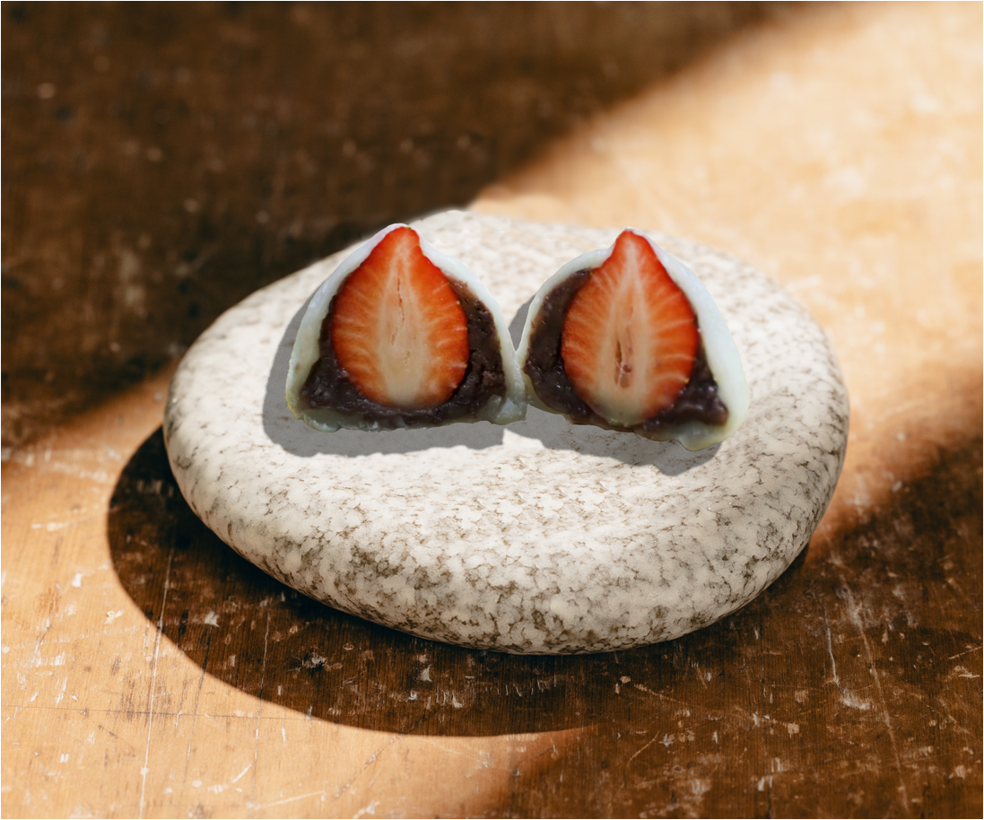 聽說明月堂的草莓大福之所以如此美味,跟講究的傳統工法脫不了關係。為了製作完美外皮,明月堂的草莓大福皮是用蒸熟的糯米慢慢搥打而成,經過千錘百鍊造就的口感自然與坊間那些用糯米粉加水製作的外皮大不相同。當你慢慢咀嚼,甚至還能嚐到淡淡米香。而明月堂招牌的紅豆餡更不用說,那種綿密細膩真的是讓人一吃上癮。