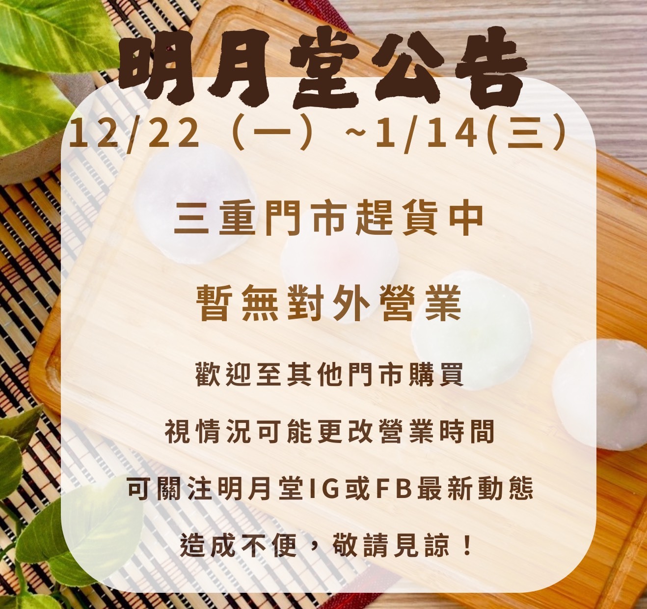 視情況可能更改營業時間,可關注明月堂IG或FB最新動態